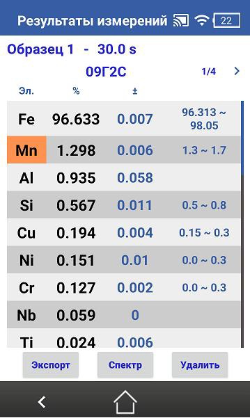 В рамках данного режима осуществляется определение следующих химических элементов: