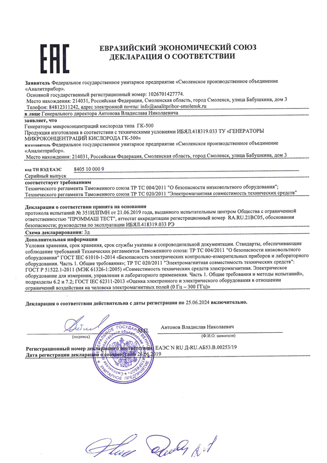 ГК-500 - генератор микроконцентраций кислорода - предназначение для приготовления поверочных газовых смесей заключается в использовании рабочего эталона 1-го разряда по ГОСТ 8.578-2002!