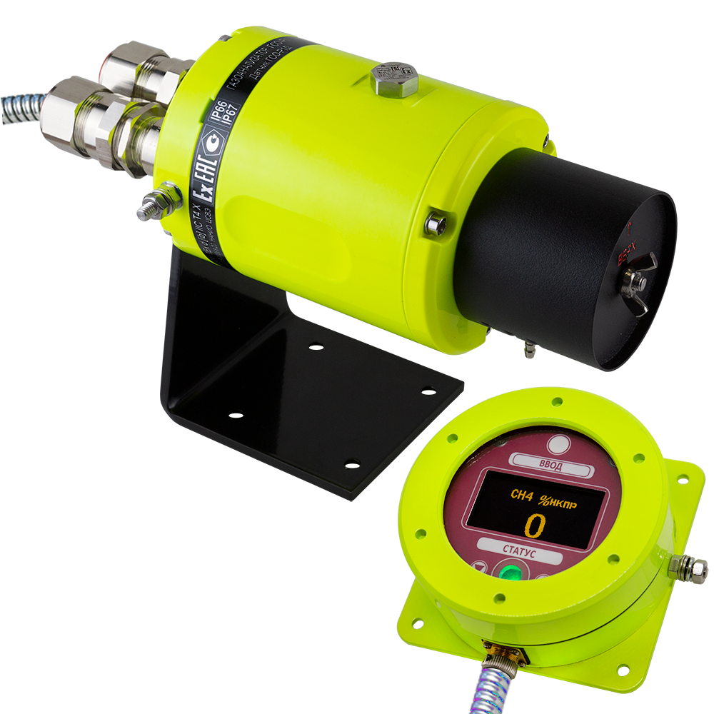 Газоанализатор может функционировать в экстремальных климатических условиях, в агрессивной атмосфере, в бескислородной среде, во взрывоопасных зонах помещений и наружных установок.
