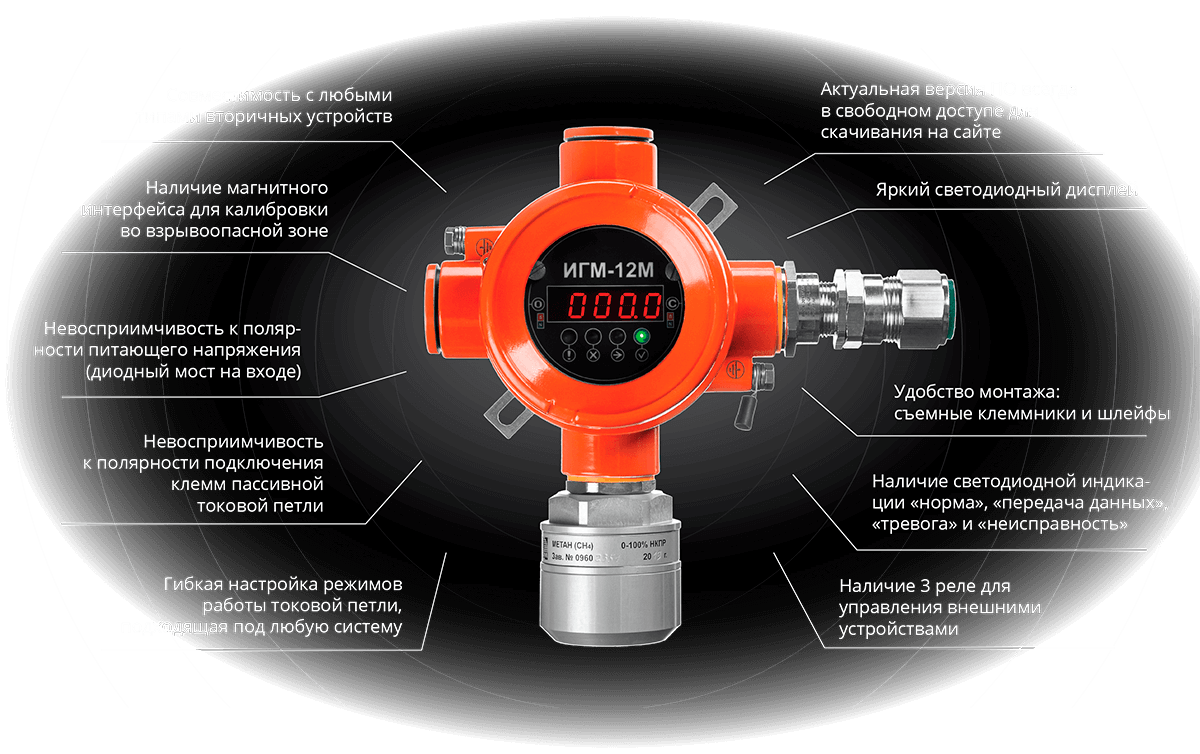 Газоанализатор стационарный ИГМ-12М для автоматического непрерывного контроля опасных концентраций горючих, токсичных газов, кислорода и диоксида углерода, ПДК вредных и углеводородных газов в потенциально опасных местах.