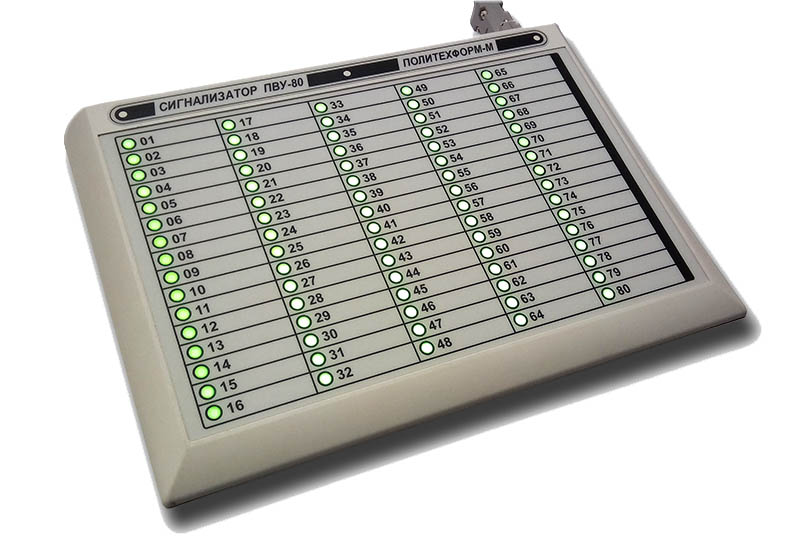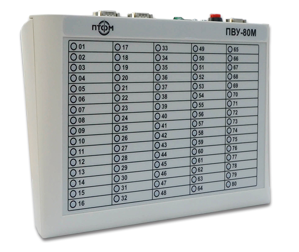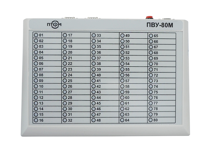- Пульт ПВУ-80М имеет звуковую и светодиодную индикацию, служит для оповещения дежурного персонала о превышении заданных пороговых значений анализируемых веществ или о возникновении неисправности в системе.